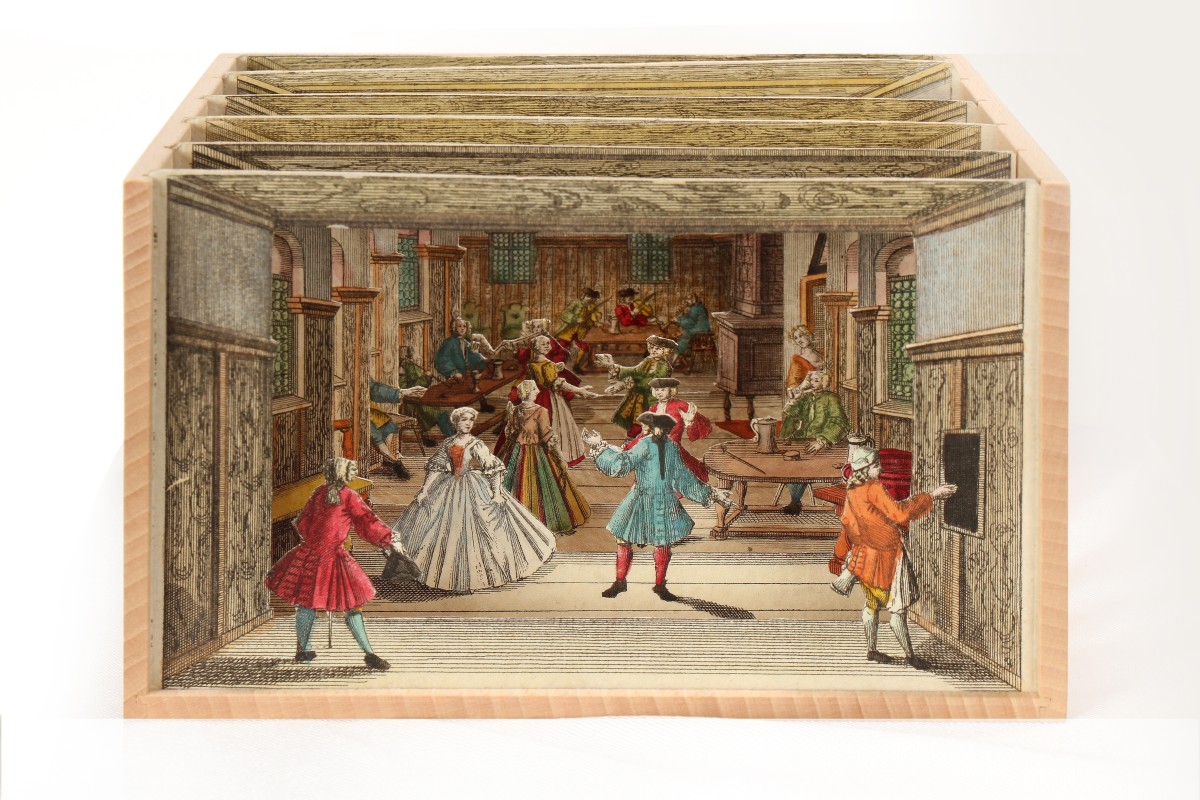 Music and dancing in an inn, diorama by Martin Engelbrecht, around 1755, privately owned. / Picture: © © Musik und Tanz in einem Gasthaus, Diorama von Martin Engelbrecht, um 1755, Privatbesitz